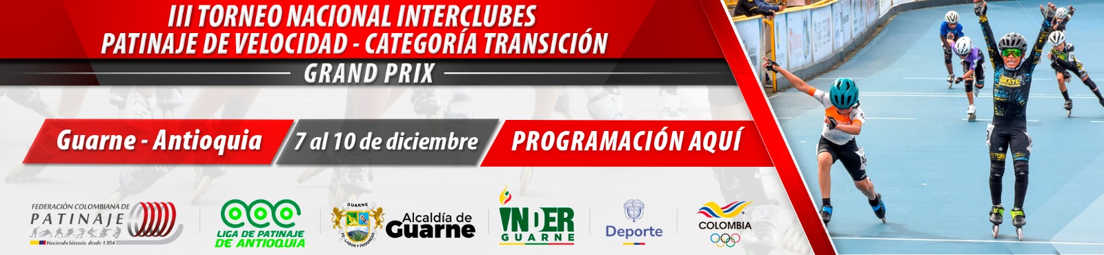 Por medio de la cual se convoca y reglamenta el III TORNEO NACIONAL INTERCLUBES, EN LA DISCIPLINA DEPORTIVA DE PATINAJE DE VELOCIDAD CATEGORÍA TRANSICIÓN, EN EL MARCO DEL GRAND PRIX que se realizará entre el 7 y 10 de diciembre de 2025 en el municipio de Guarne. |