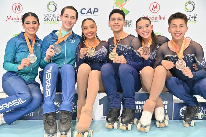Colombia recortó distancia y se puso a solo una medalla de oro del líder del torneo de naciones en los Campeonatos panamericanos de patinaje artístico Buenos Aires 2025, Brasil, al ganar las dos preseas en disputa en la prueba parejas de danza, tanto en júnior como en sénior.