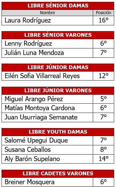 La última presea del equipo colombiano fue de oro y la obtuvo Paulina Ruiz Romero en la modalidad de libre júnior. Con una puntuación de 157.69, la colombiana superó a la italiana Victoria Baldo, quien se quedó con la medalla de plata al sumar 137.02, y a la argentina Micaela Lopetegui, ganadora del bronce con 132.65 puntos.