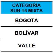 La sub-14 mixta que tendrá tres equipos en competencia, jugará dos rondas de todos contra todos. Los dos primeros de estas dos rondas disputarán la medalla de oro.