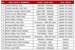 Para esta primera cita de la categoría sub-19 varones, la Federación Colombiana de Patinaje convocó a 16 deportistas pertenecientes a seis clubes de las ligas de Antioquia, Bogotá, Caldas y Valle del Cauca, quienes actualmente hacen parte del calendario competitivo de la temporada 2026.