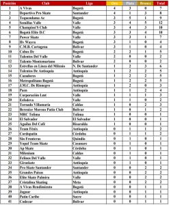 Por su parte, Avivas aseguró el título tras una sólida actuación en las primeras jornadas, en las que acumuló cuatro medallas de oro y tres de plata. Este balance fue suficiente para quedarse con el primer lugar, favorecido además por el rendimiento del Deportivo Pro Skate, que en el cierre solo sumó un bronce, mientras los otros siete clubes lograron una medalla de oro cada uno.