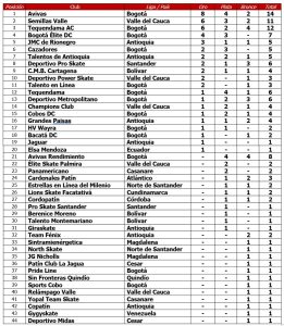 En el medallero general, el Semillas del Valle del Cauca se ubicó en el segundo lugar (6 oros – 3 platas – 2 bronces) al superar por tan solo una medalla de plata al Tequendama AC de Bogotá, que se ubicó tercero (6 oros – 2 platas – 4 bronces).