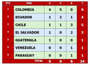 Kollin Andrea Castro y Jhon Edwar Tascón, con dos oros y una plata, cada uno de ellos, fueron los patinadores más destacados, medallas que se unieron a las dos platas conseguidas por Juan Jacobo Mantilla y una más de Luz Karime Garzón.