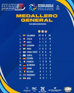Con una medalla de plata de Kevin Lenis y una de bronce de Juan Jacobo Mantilla en la maratón masculina, la Selección Colombia cerró su participación en el Campeonato Mundial de Patinaje de Velocidad Beidaihe 2025. En este certamen, obtuvo el título número 22 en su historia y el 15 de manera consecutiva.